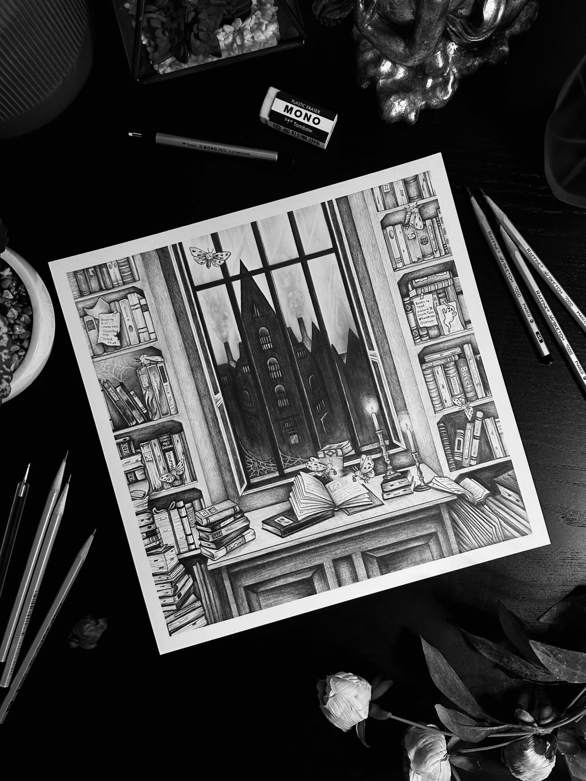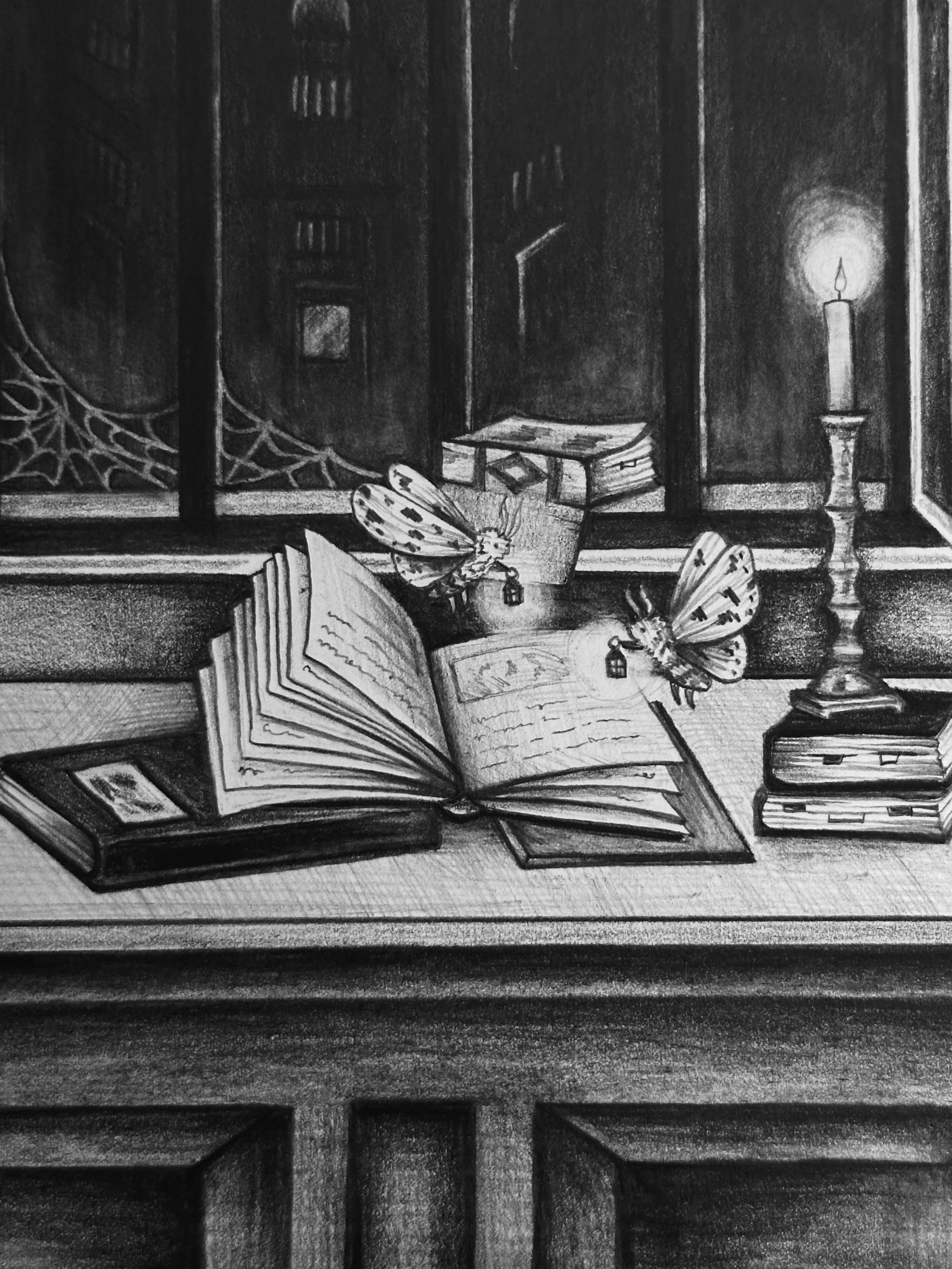 “Moth Bitten Library” Original Graphite Illustration